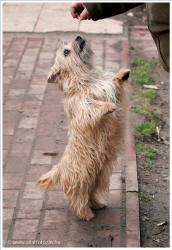 Nampi is our first own-bred norwich terrier. As she was the only puppy in the litter, we kept her and she became our little dog. She became a red, nice, full-strong color bitch.